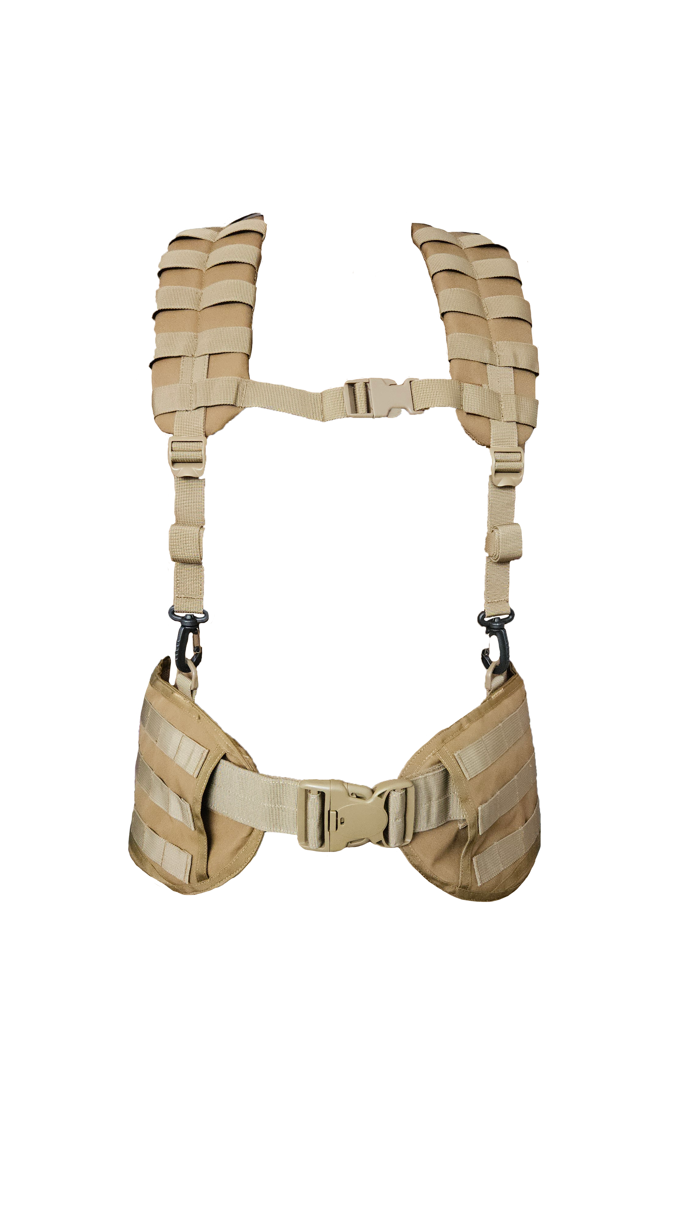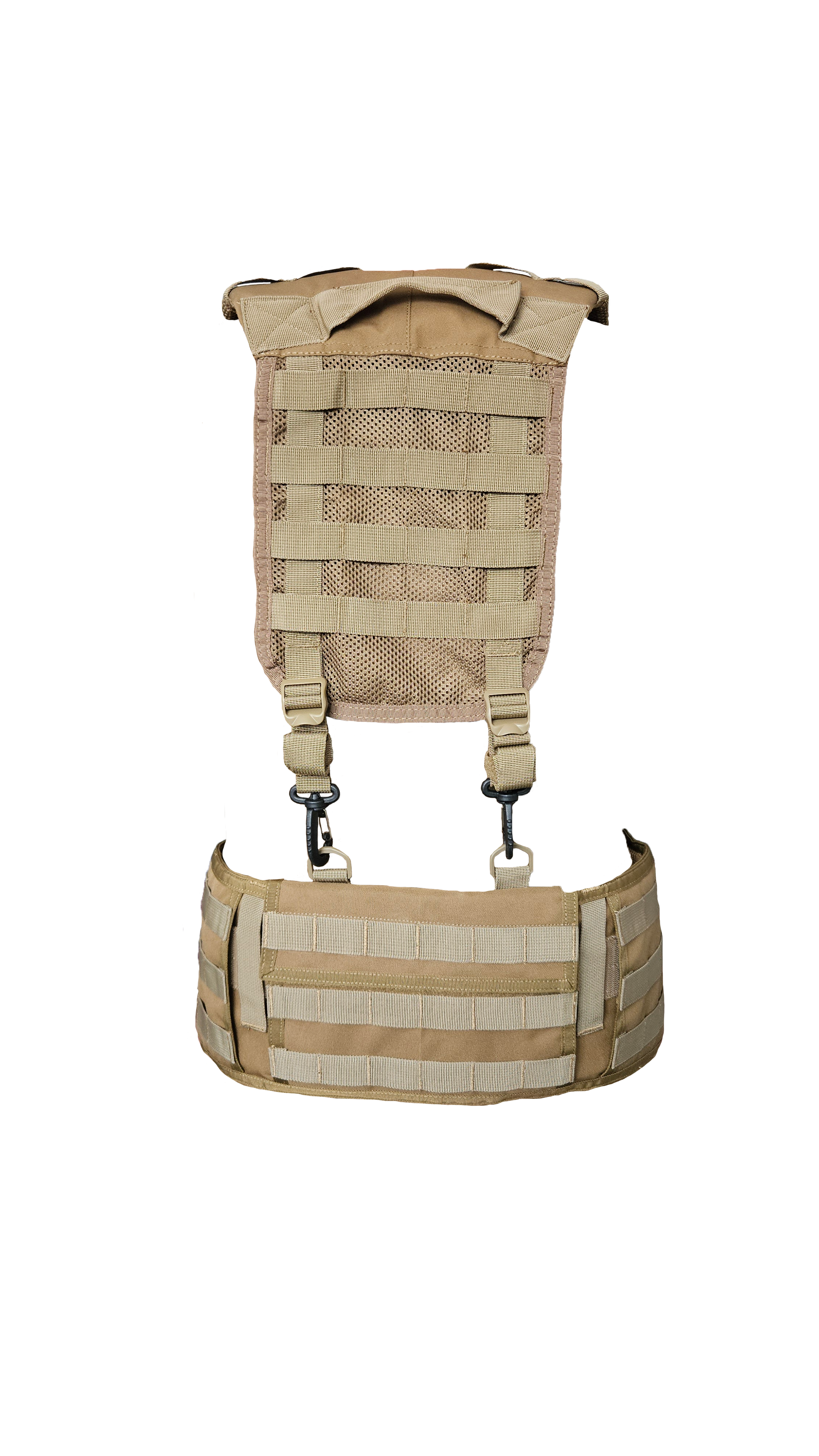 If you want to use the battle belt as an old school webbing set up, you can attach the new Blizzard Battle Belt Yoke system (sold seperately). When combined together (see last two pictures), the battle belt and yoke fits easily over the CAF frag vest. When combined this rig will allow you to carry a s@&t ton of ammo and kit.