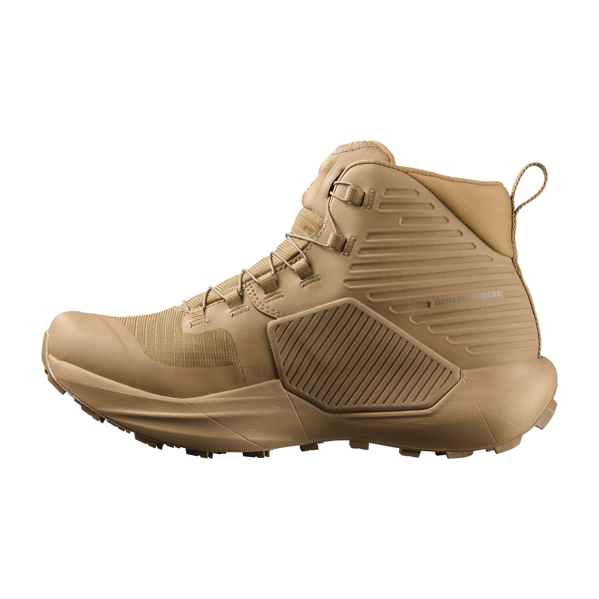 Based on an ultra-distance trail running shoe, the Genesis Forces GTX delivers all-day comfort and underfoot protection. Advanced materials and design come together in a high-performance tactical boot built to excel in the most critical situations, with the added protection of a waterproof GORE-TEX membrane for extended use in severe wet weather.