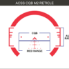 - ACSS 5.56 CQB-M2 chevron reticle has BDC and ranging out to 600 yards with 5.56 NATO, .223 Remington, 5.45x39mm, and .308 Winchester