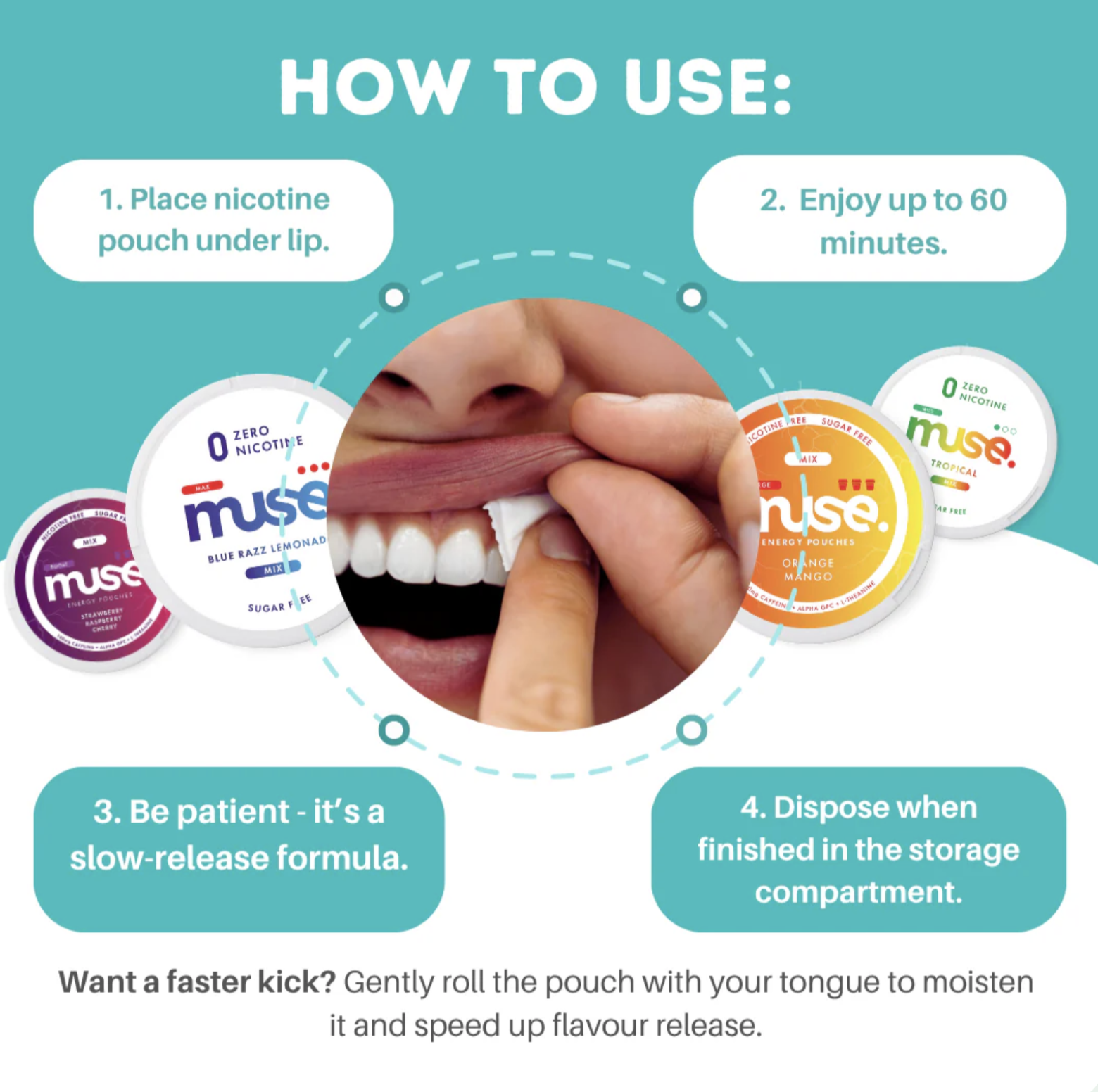 From the early workout to the midnight deadline, Muse Energy Pouches deliver clean, long-lasting focus without sugar, jitters, or sudden crashes. Compact, discreet, and designed for modern life, they’re your pocket-sized boost; ready whenever you are.